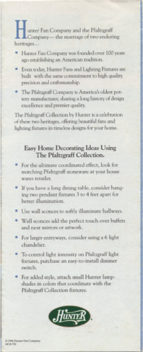 Hunter 1996 Pfaltzgraff Fold-Out Brochure