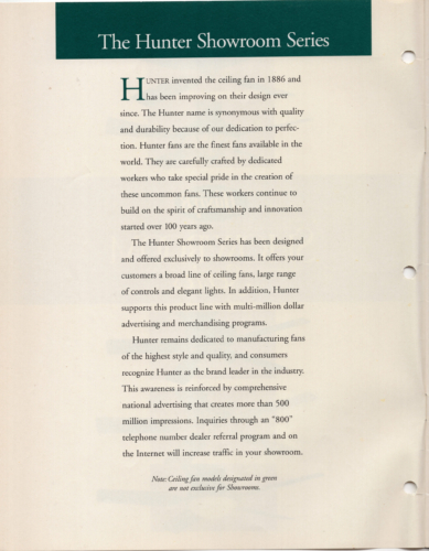 Hunter 1997 Showroom Series Catalog