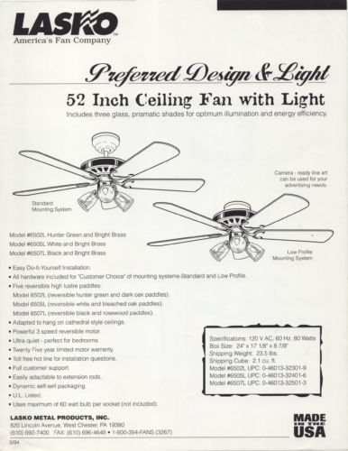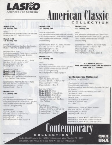 Lasko 90’s Loose Leaf Catalog
